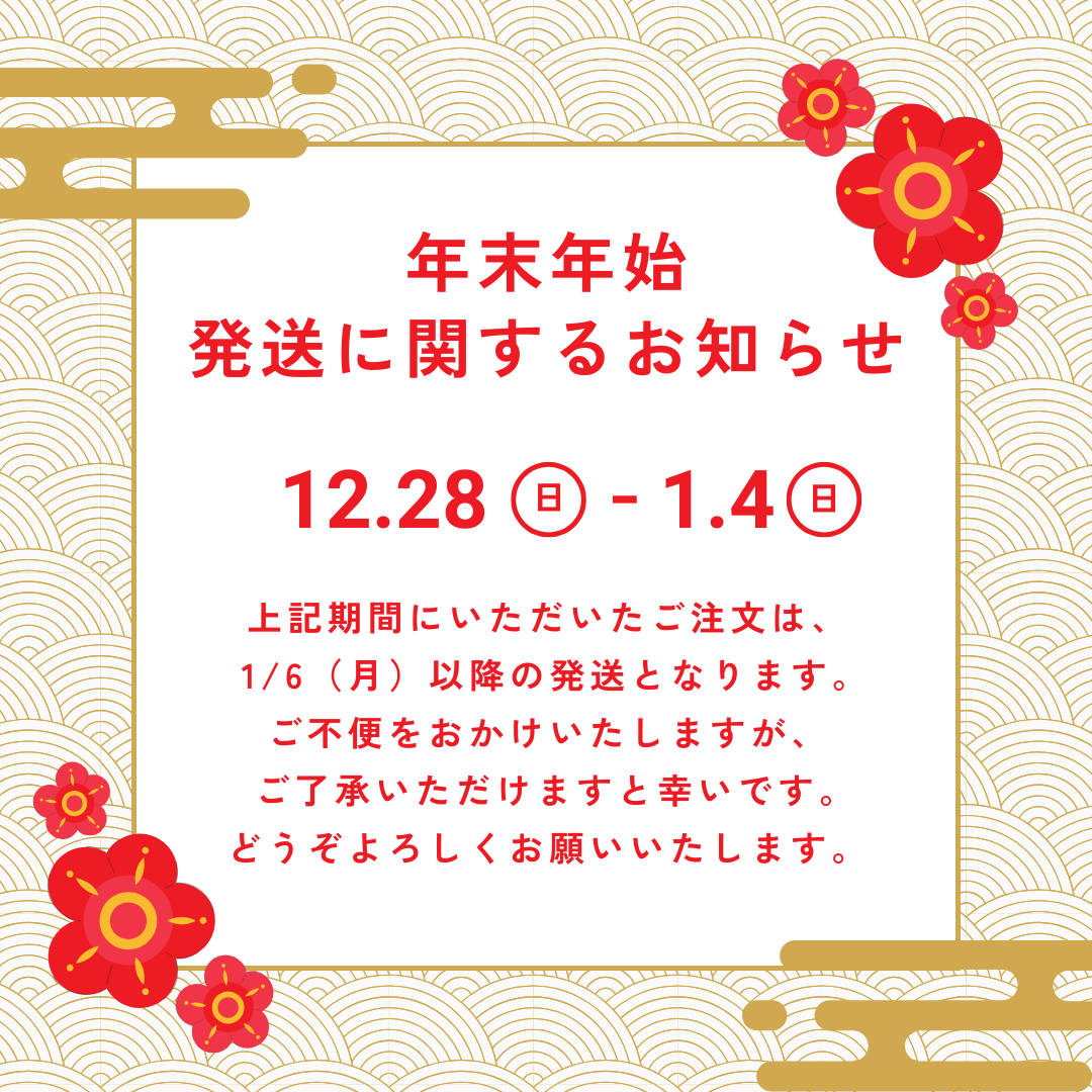 2023年12月28日(木)~2024年1月5日(金)の期間中にいただきましたご注文につきましては、